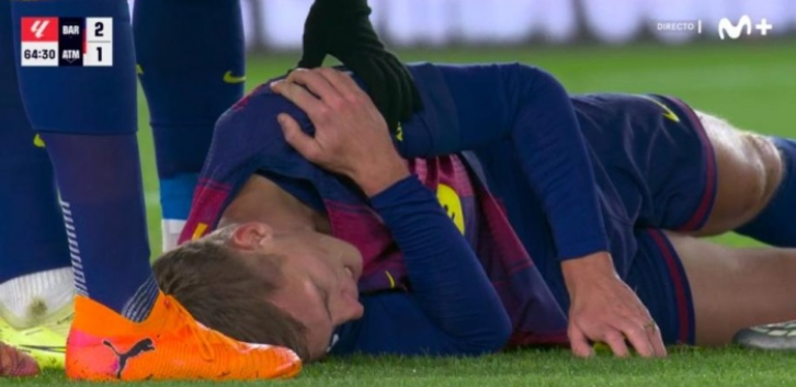 奥尔莫在射门后肩膀着地受伤,随后被替换下场。队医在更衣室内为其完成了肩部复位。巴萨主帅弗里克赛后表示:“他的肩膀出现了问题,我们将在明天进一步检查评估。”