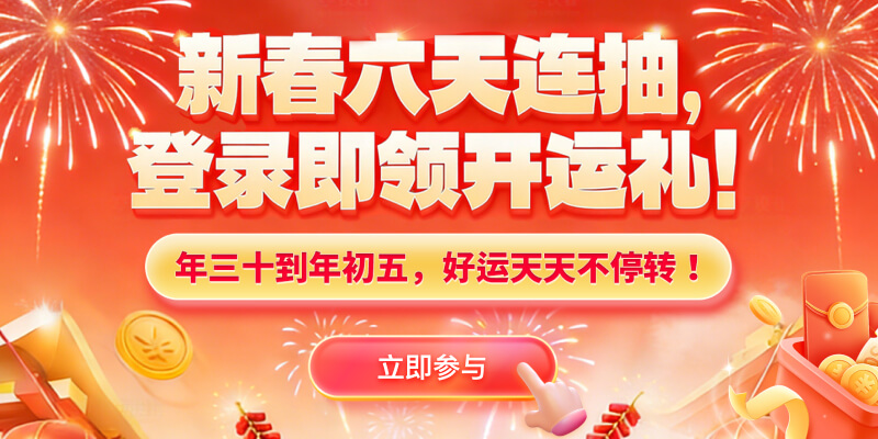 新年幸运大转盘 · 6天连抽,每日双倍抽好运!
