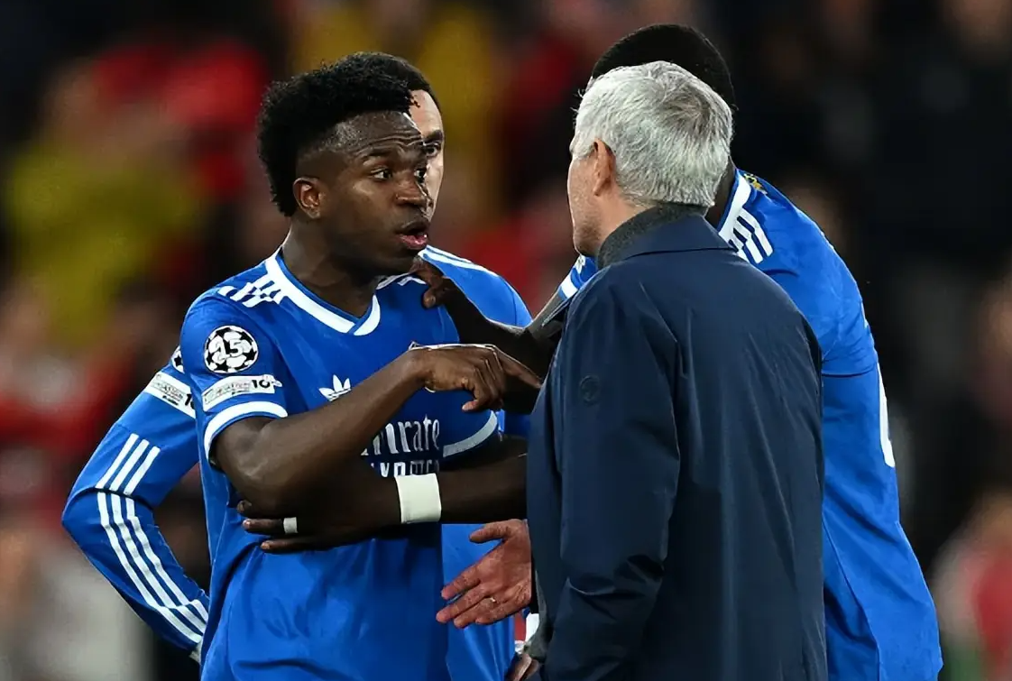 北京时间2月18日,欧冠1/8决赛附加赛首回合,皇家马德里客场1比0击败本菲卡。第50分钟,姆巴佩左路分球,维尼修斯内切晃过防守后兜射远角破门,打入全场唯一进球。进球后他因庆祝动作吃到黄牌,双方爆发冲突,本菲卡教练组一人被直红罚下。随后,维尼修斯向主裁判投诉对方球员普雷斯蒂亚尼在争执中使用种族歧视言论,比赛因此暂停数分钟。慢镜头显示两人确有激烈口角,但具体言辞尚待欧足联调查。下半场第85分钟,穆里尼奥因不满任意球判罚连续抗议,连吃两黄被罚出场。补时长达12分钟,但比分未再改变。
