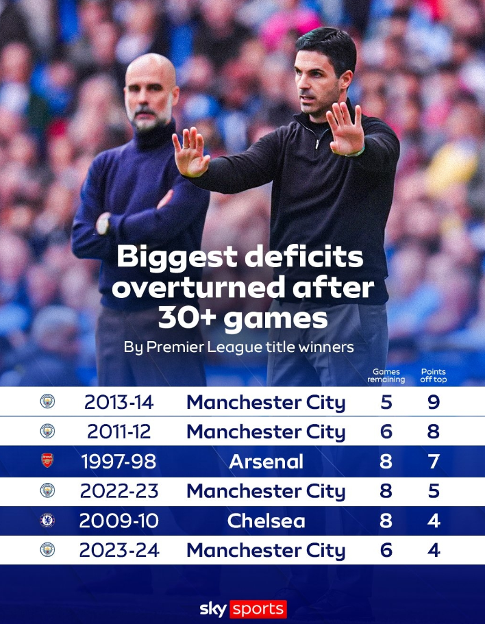 2023/24赛季,曼城,剩6场落后4分